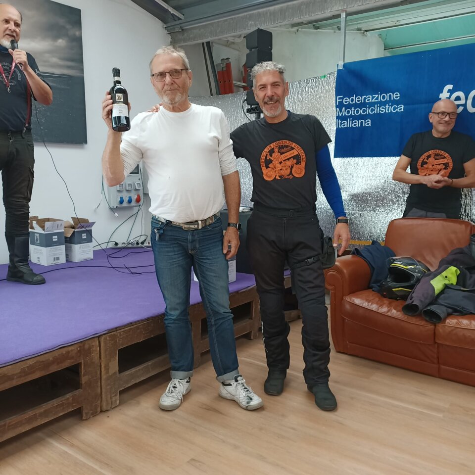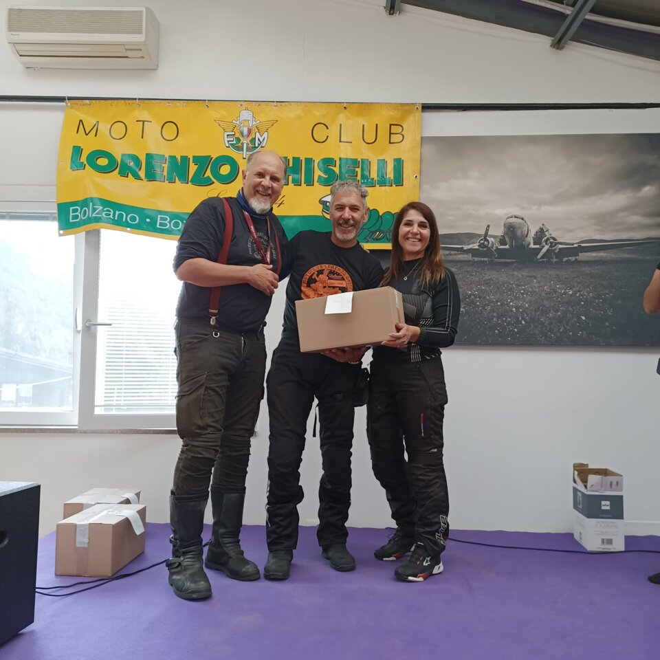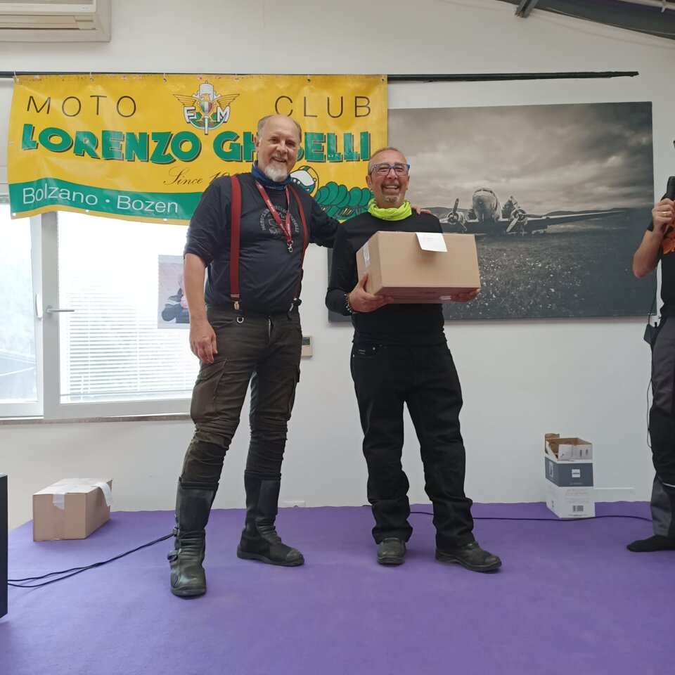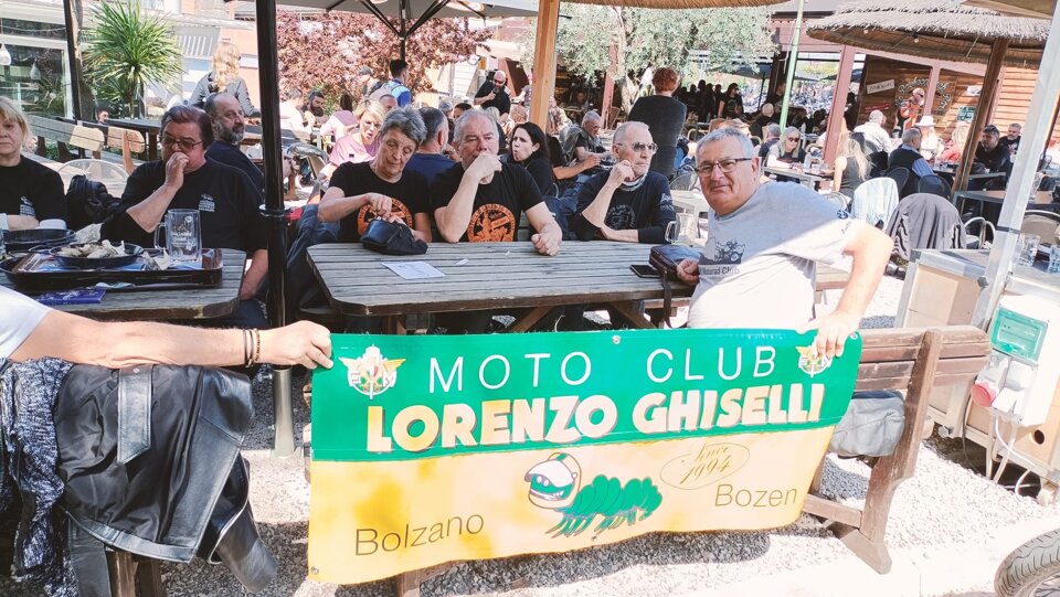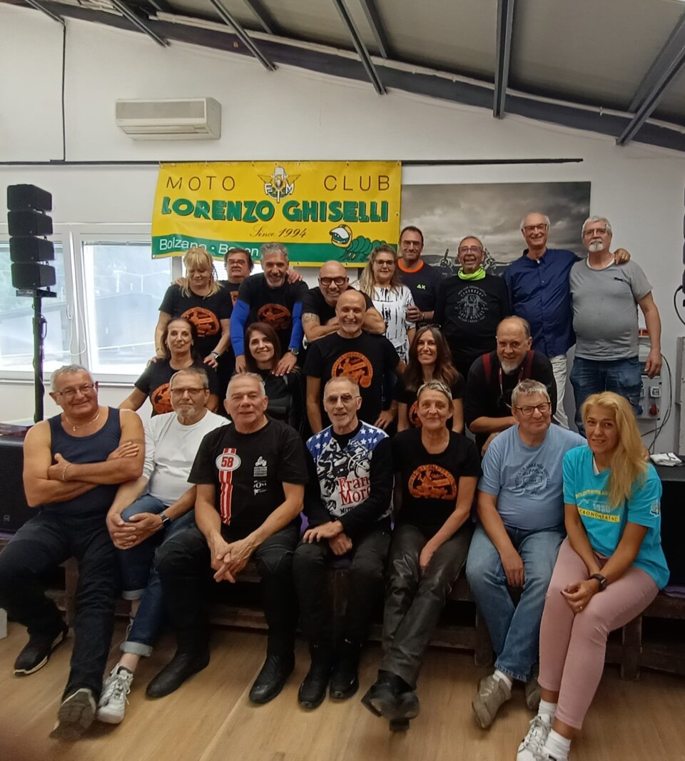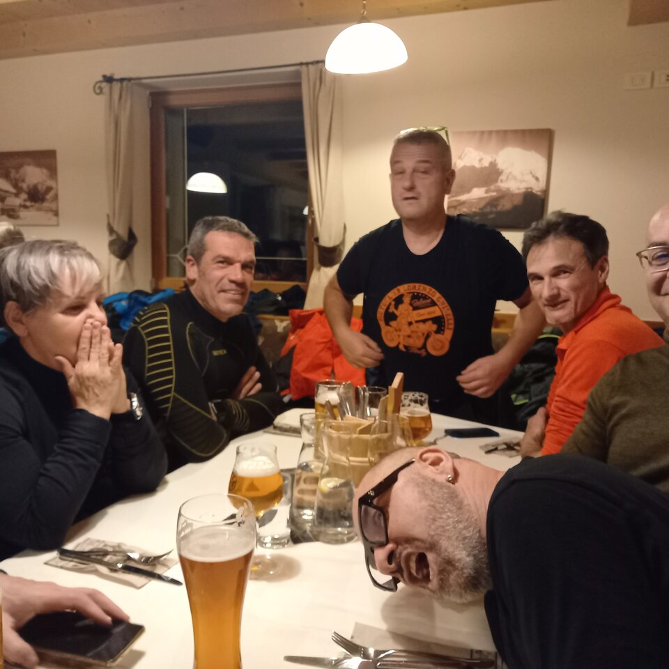 Riuscitissima manifestazione in occasione dell'ultima uscita in occasione del Memorial Roberto Mantovan che ha visto una discreta presenza di associati che si sono cimentati nella classica "cronomerenda". Itinerario già percorso dal nostro Roberto Pelanda, con tempi di percorrenza "rigorosamente secretati", i quali hanno messo a dura prova i partecipanti. Temperature in quota che si avvicinavano allo 0° (Passo Nigra erano 2°) ma percorso degno di paesaggi autunnali impagabili. Varie tappe in "itinere" sia per certificare il passaggio (ma la fontana di Tires per qualcuno era introvabile), sia per rifocillare la gola, fino a raggiungere il fondovalle dove finalmente la temperatura era sicuramente più mite. Raggiunto il posto per il pranzo, grazie al socio Claudio per la messa a disposizione dei locali, si è dato inizio al rifornimento dei partecipanti con un buon pieno di gulasch, canederli e riso (piatto tipico della Sicilia), con paziente attesa degli ultimi arrivati che come scusa hanno dichiarato che una moto del loro gruppetto avrebbe avuto problemi con la batteria.........mah.....una BMW??!!! e poi parlano male di Ducati e Moto Guzzi!!!! :-) :-)....secondo me hanno sbagliato strada......:-) :-) :-)......Dopo il lauto pranzo via alle premiazioni, con premi per tutti i partecipanti, dove il Presidente si è giocato ai rigori il primo premio essendo arrivato ex aequo con Gaetano. Alla fine la classifica ha visto il Presidente al primo posto, Gaetano Antinoro al secondo e Andrea al terzo. Manifestazione riuscita anche perché il ricordo di Roberto è ancora vivo ed è bello poter ricordare una persona che è stata presente, sotto molteplici aspetti, nella storia di vita del Motoclub. Ciao Roby, sempre con noi. (di seguito alcune foto dell'evento)