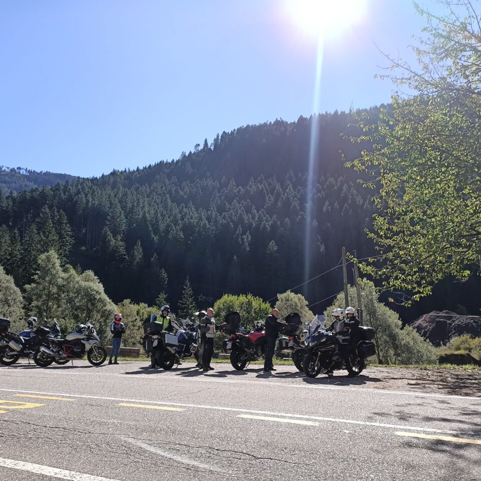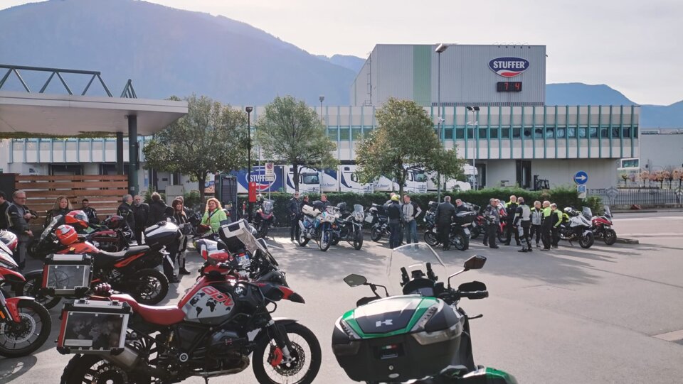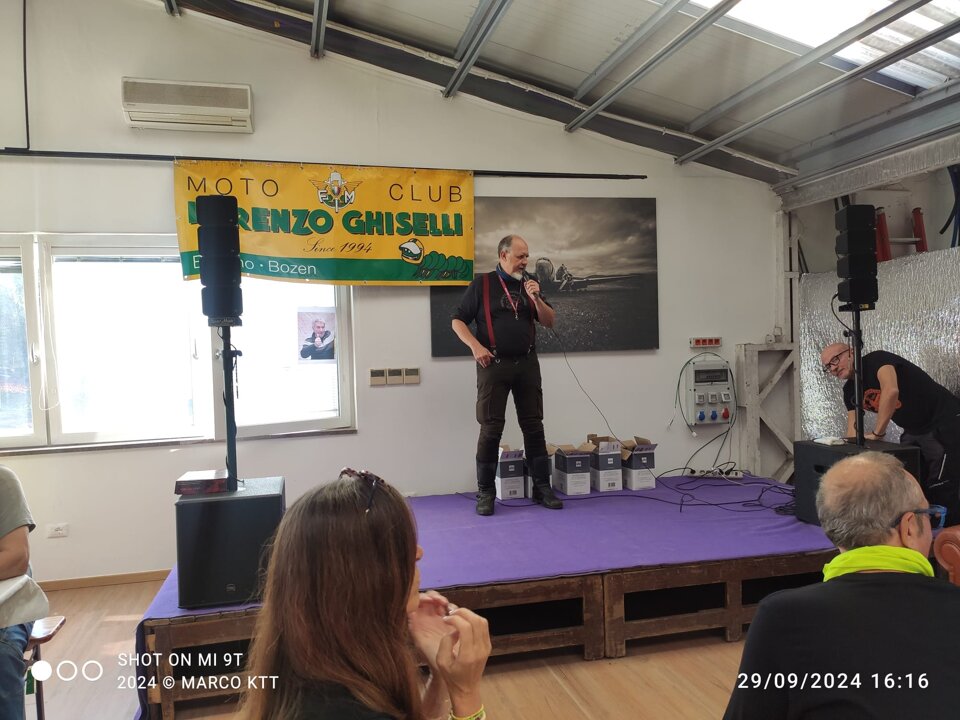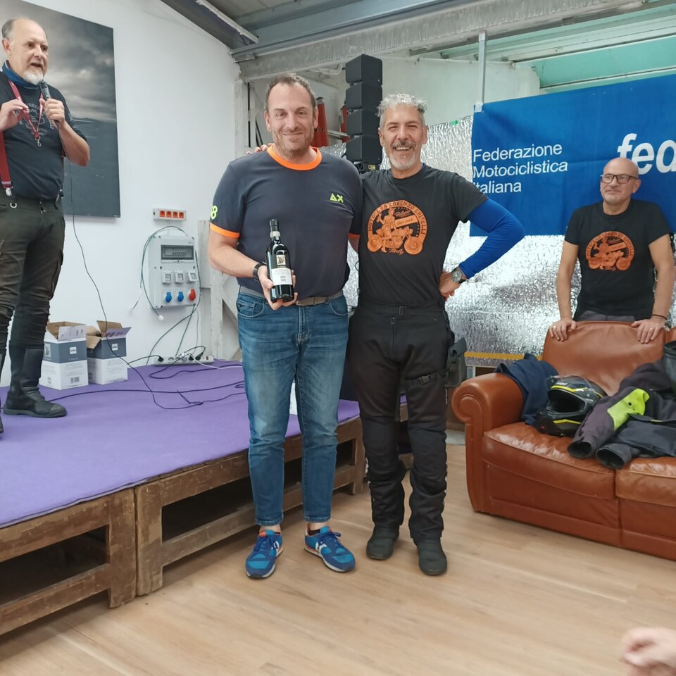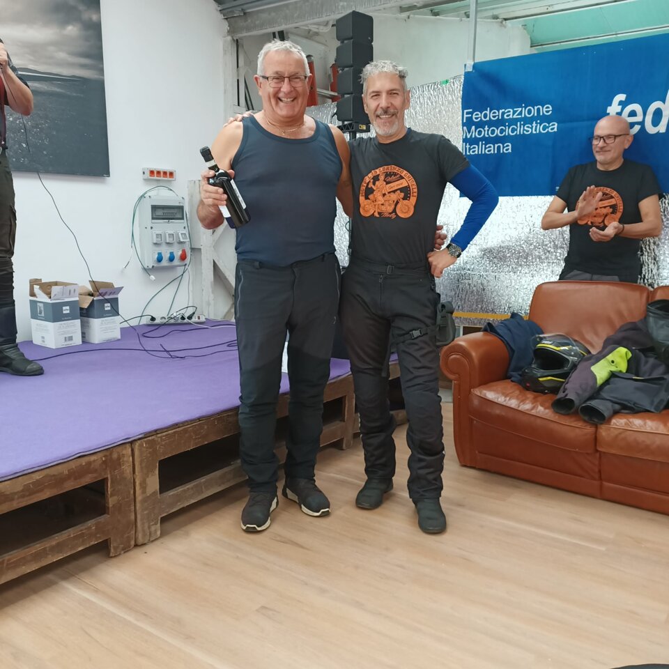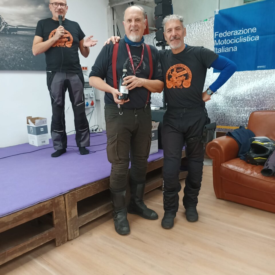 Riuscitissima manifestazione in occasione dell'ultima uscita in occasione del Memorial Roberto Mantovan che ha visto una discreta presenza di associati che si sono cimentati nella classica "cronomerenda". Itinerario già percorso dal nostro Roberto Pelanda, con tempi di percorrenza "rigorosamente secretati", i quali hanno messo a dura prova i partecipanti. Temperature in quota che si avvicinavano allo 0° (Passo Nigra erano 2°) ma percorso degno di paesaggi autunnali impagabili. Varie tappe in "itinere" sia per certificare il passaggio (ma la fontana di Tires per qualcuno era introvabile), sia per rifocillare la gola, fino a raggiungere il fondovalle dove finalmente la temperatura era sicuramente più mite. Raggiunto il posto per il pranzo, grazie al socio Claudio per la messa a disposizione dei locali, si è dato inizio al rifornimento dei partecipanti con un buon pieno di gulasch, canederli e riso (piatto tipico della Sicilia), con paziente attesa degli ultimi arrivati che come scusa hanno dichiarato che una moto del loro gruppetto avrebbe avuto problemi con la batteria.........mah.....una BMW??!!! e poi parlano male di Ducati e Moto Guzzi!!!! :-) :-)....secondo me hanno sbagliato strada......:-) :-) :-)......Dopo il lauto pranzo via alle premiazioni, con premi per tutti i partecipanti, dove il Presidente si è giocato ai rigori il primo premio essendo arrivato ex aequo con Gaetano. Alla fine la classifica ha visto il Presidente al primo posto, Gaetano Antinoro al secondo e Andrea al terzo. Manifestazione riuscita anche perché il ricordo di Roberto è ancora vivo ed è bello poter ricordare una persona che è stata presente, sotto molteplici aspetti, nella storia di vita del Motoclub. Ciao Roby, sempre con noi. (di seguito alcune foto dell'evento)