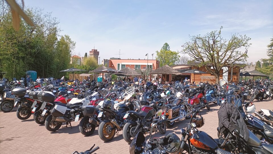 Prima gita di stagione, passi di montagna che ancora non sono praticabili al 100x100 ed in totale sicurezza, molte moto e partecipanti iscritti, si sta "bassi"........ritrovo come di consuetudine al distributore in via Einstein, caffè, rifornimento e alle 9.30 si parte con il Presidente che fa da apripista. Valle dell'Adige sulla quale il sole primaverile già si fa sentire con temperature quasi estive. Sosta lungo la strada per pausa caffè/aperitivo e poi si riprende per la destinazione prevista, Lazise. Il noto locale per motociclisti , La Pacheca, ci attende per rifocillare i 50 partecipanti che a bordo di 31 moto hanno riempito il già pieno parcheggio del locale, ma lì è un continuo via vai di moto e motociclisti di ogni genere, harleysti in primis. Tavoli riservati al M.C. per l'occasione e posti a sedere in abbondanza per condividere la passione per le due ruote che accomuna i partecipanti, arricchendo il tutto con i piatti abbondanti che la cucina sforna al ritmo di catena di montaggio giapponese!!!!! Senza contare poi incontri inaspettati di persone che mai avresti pensato di trovare in questi contesti su due ruote......verso le 15, dopo aver smaltito in parte il cibo, si riparte nella solita tradizione del M.C., ovvero ognuno decide l'itinerario, ripercorrendo la strada dell'andata o deviando per Mori e la Val di Gresta con il passo Bordala che è stato entusiasmante per le curve e per il paesaggio tipico della primavera che si risveglia. Sosta a Laghetti di Egna al Jacky Pub per recuperare i liquidi persi date le temperature quasi estive, anzi, estive.....27°!!!!! ritrovando parte del gruppo. Ultimi saluti e poi tutti a casa. Ottimo inizio di stagione, ottima partecipazione da parte degli associati (vecchi e nuovi), ottimo il meteo e che dire.......alla prossima!!!!! Nel frattempo Buona Strada a tutti......